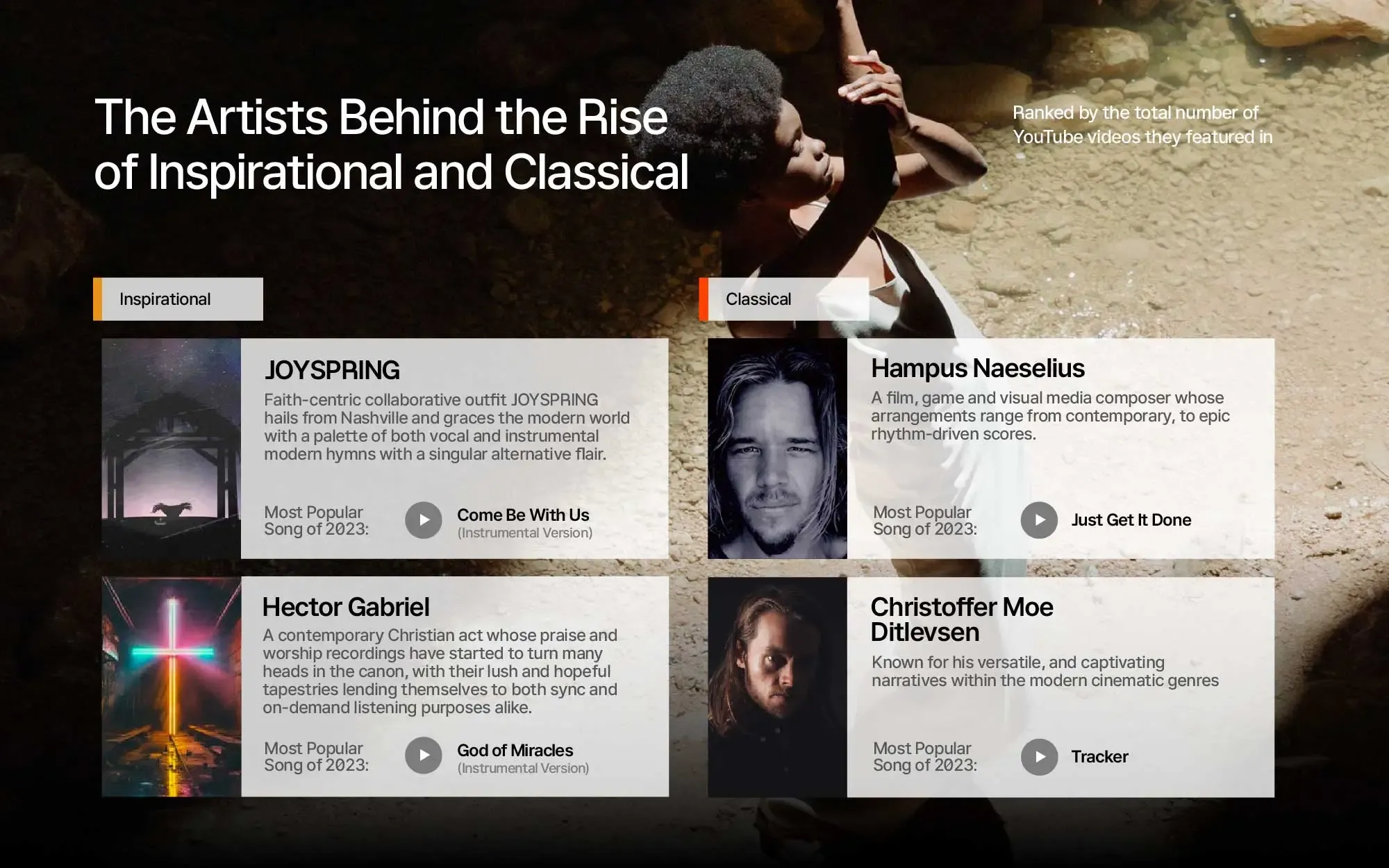 Inspirational music has become a form of escape for listeners worldwide. Amid the hustle and bustle of daily life, inspirational music acts as a sanctuary, helping people to tune out, regain balance, and find some kind of calm — if only for a few minutes.