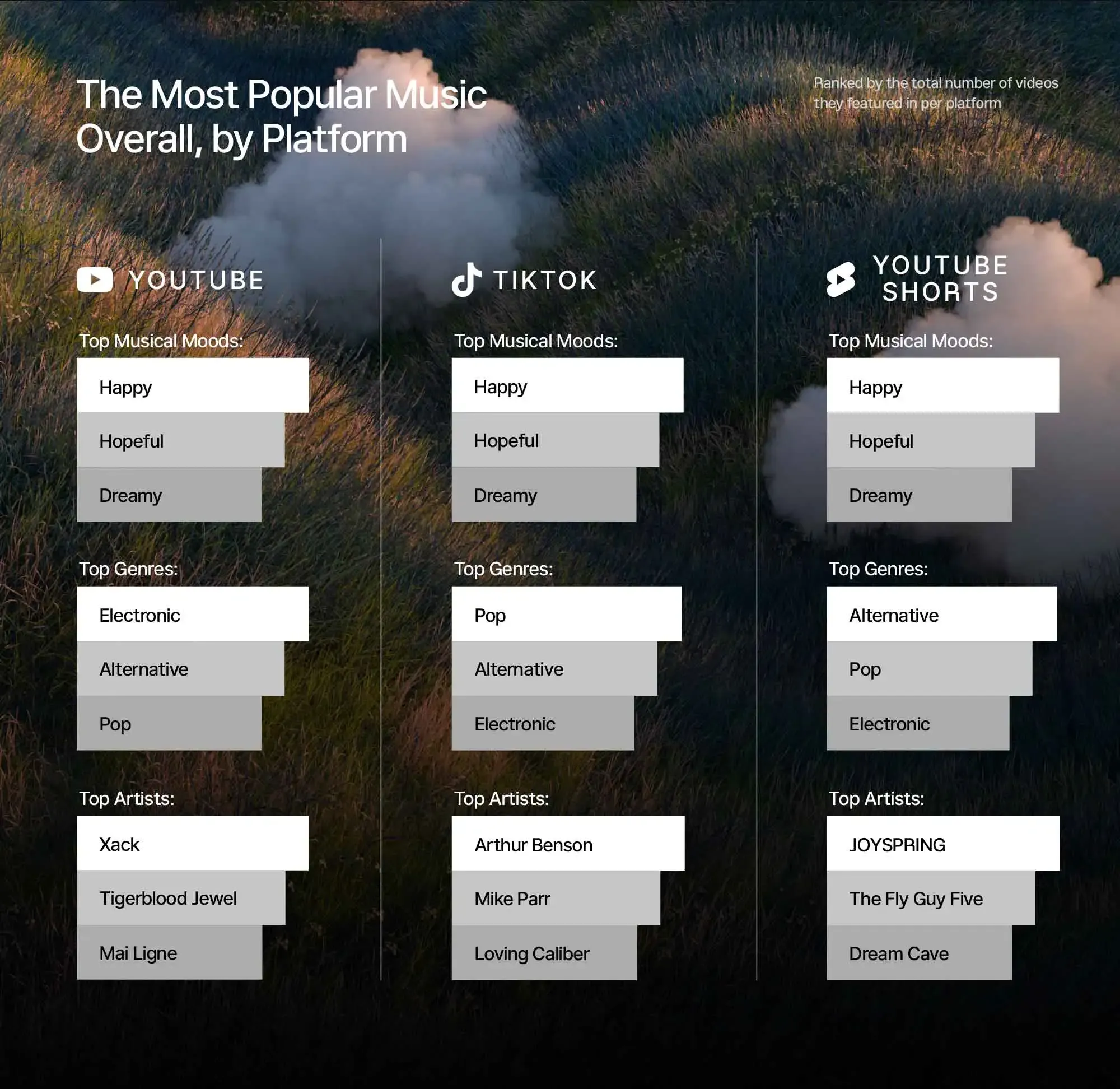 Unraveling the top music trends, our report highlights the powerful role of music in challenging times. Creators are orchestrating their content around themes of escapism and tranquility, turning to music as a medium for relief and comfort.